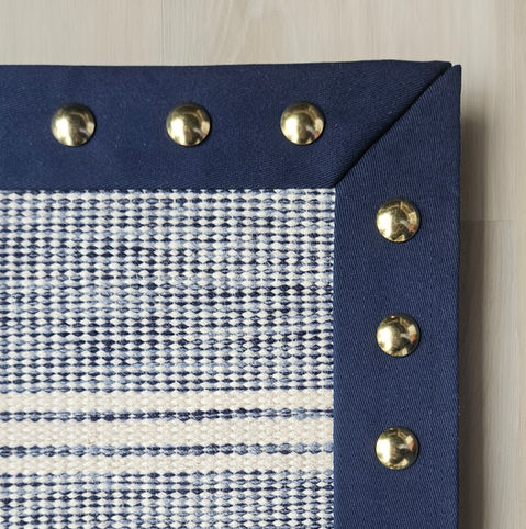 Wide cotton is the perfect way to add that custom “bordered” look to a finished rug or stair runner. Wide cotton comes in over 50 colors and shows approximately 1.5 inches on the edge. Go with a blue tone for a classic New England look, or black for a nice contrast!